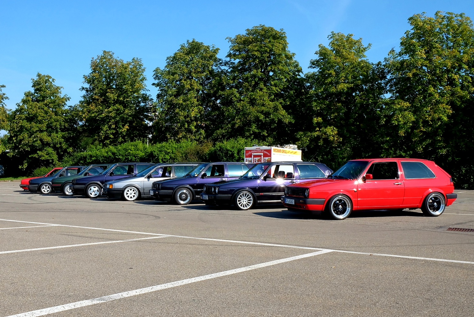 Durch meine zunehmende Vernetzung mit Facebook und Instagram habe ich Kontakt zu einer WhatsApp-Gruppe von 19E-Freunden im Südwesten Deutschlands. Wir haben uns im September einmal in Reutlingen getroffen. Florian war mit seinem Oettinger-GTD-Ice auch dabei. Von sechs 2er Gölfen waren 3x F&I (inkl. ABF Umbau, Florians und meiner) und 2 Specials dabei (16V und GT). Dazu gab es Motorumbauten und Interieur-Tuning. Seht Selbst: