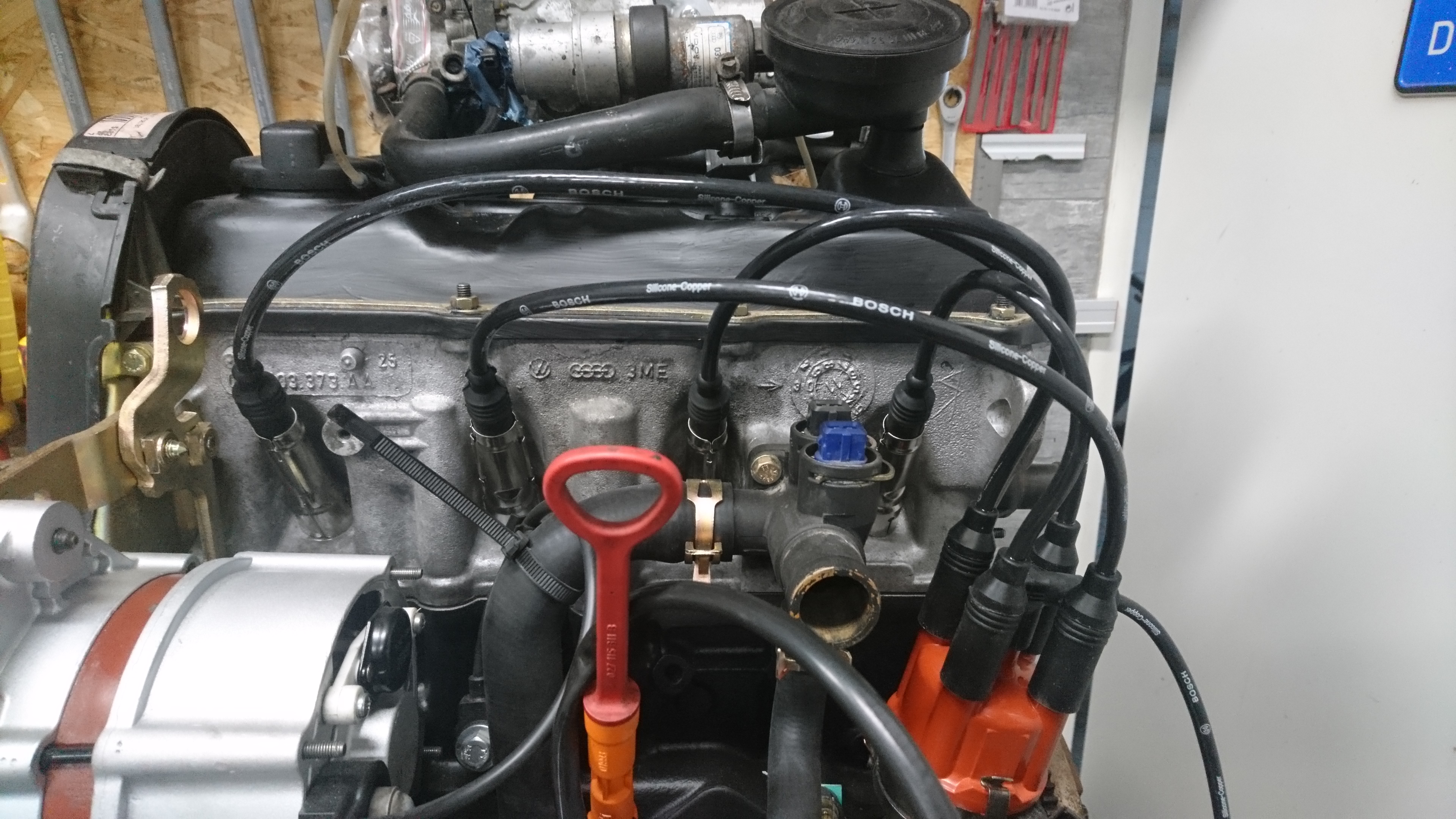 In der Zwischenzeit gings am Motor etwas weiter, die neuen Einspritzdüsen sind drin, die Ansaugbrücke montiert und später kommt noch der Zahnriemen drauf.