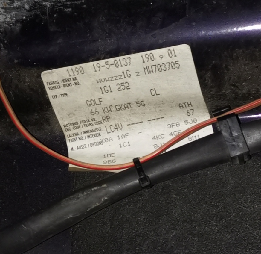 Aufkleber im Serviceheft, im Kofferaum und Bestätigung durch Wolfsburg sind konsistent. Interessant die lange Zeit zwischen Auslieferung und Erstzulassung - stand der in der Ausstellungshalle? Die Firma "weiß" über so alte Daten/Fahrzeuge nichts mehr
