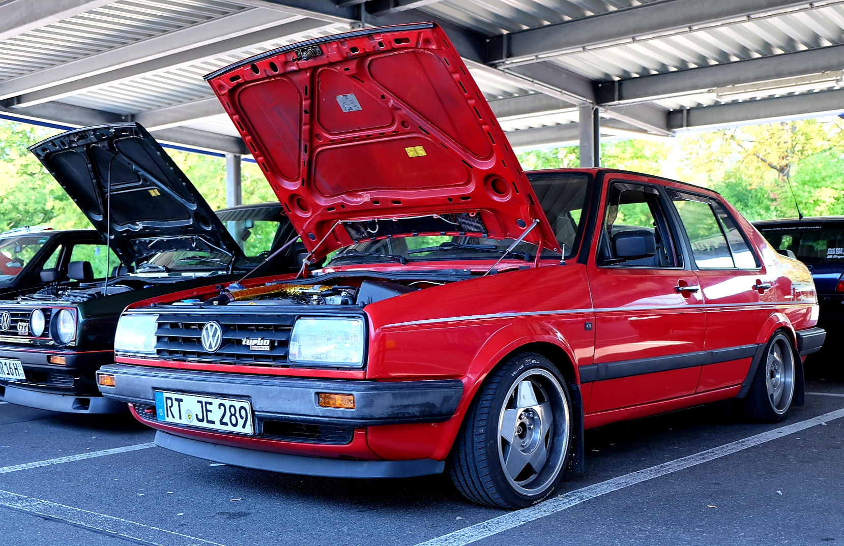 Durch meine zunehmende Vernetzung mit Facebook und Instagram habe ich Kontakt zu einer WhatsApp-Gruppe von 19E-Freunden im Südwesten Deutschlands. Wir haben uns im September einmal in Reutlingen getroffen. Florian war mit seinem Oettinger-GTD-Ice auch dabei. Von sechs 2er Gölfen waren 3x F&I (inkl. ABF Umbau, Florians und meiner) und 2 Specials dabei (16V und GT). Dazu gab es Motorumbauten und Interieur-Tuning. Seht Selbst: