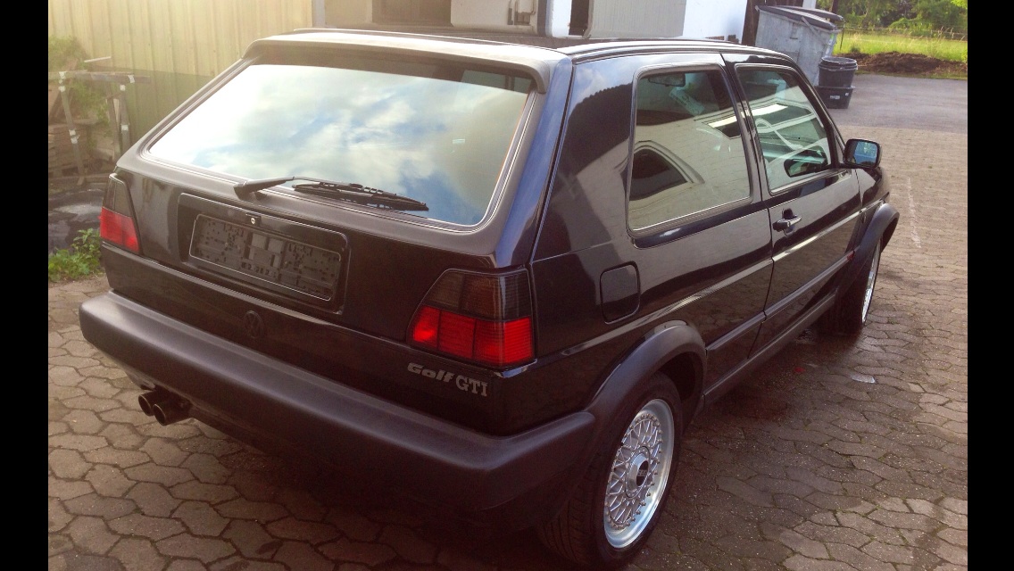 Ist ein GTI 8V mit PF Motor und Schiebedachkarosse. Der Wagen ist bis auf den Grill mit roter Umrandung und den elektrischen Recaros und den Fensterkurbeln und der Ingo Noak Edelstahlauspuffanlage komplett im Originalzustand. Im Brief sind auch keine Tuning Eintragungen. Ich bin der 3. Besitzer, der Wagen hat also 2 Vorbesitzer.