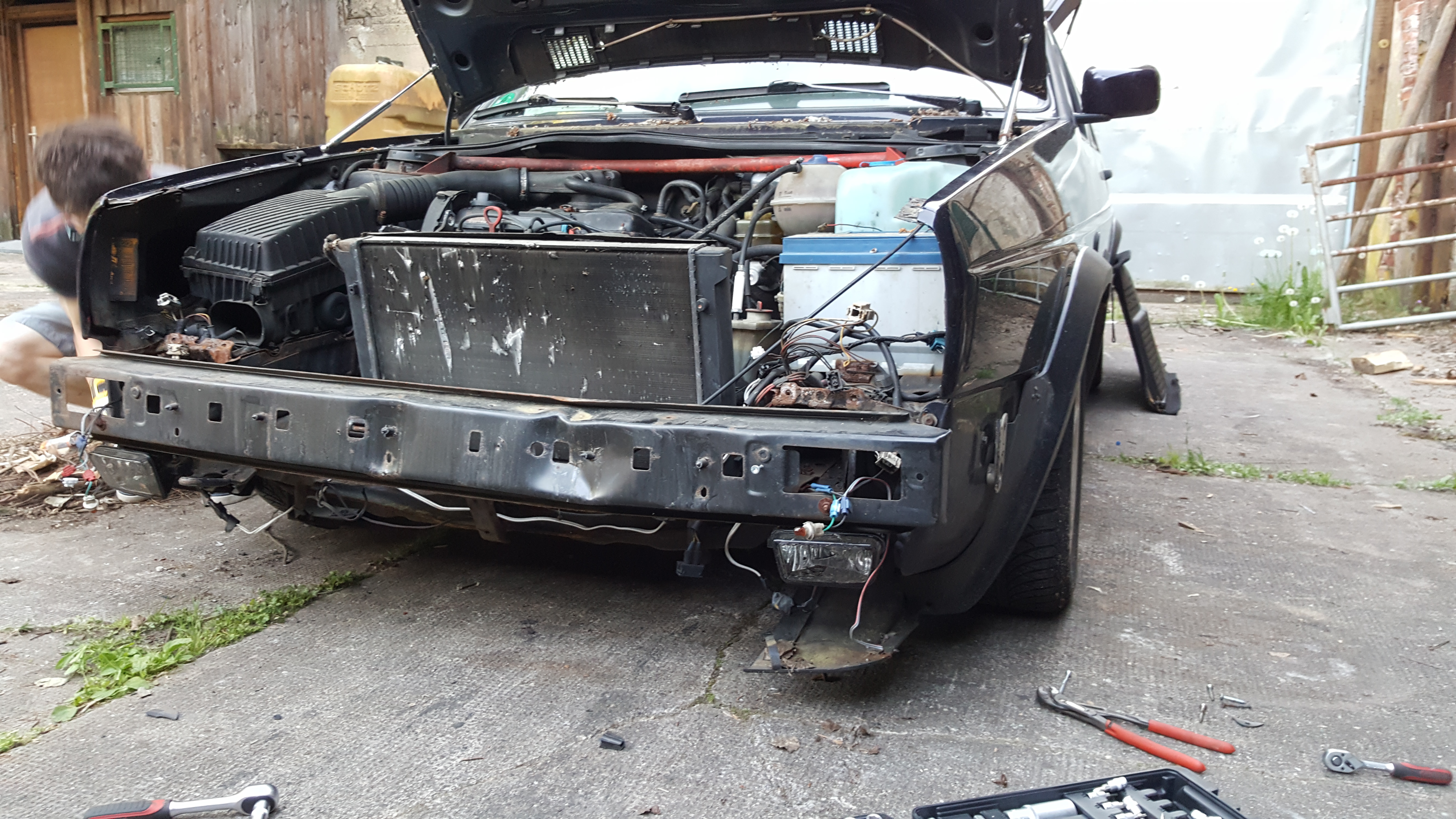 War jetzt länger aus Krankheit nicht mehr am Ice tätig und habe nur Bilder vom schaden und auch keine guten gemacht bisher. Front ist inzwischen schon auseinander und die Schweller samt Heckblech raus getrennt.