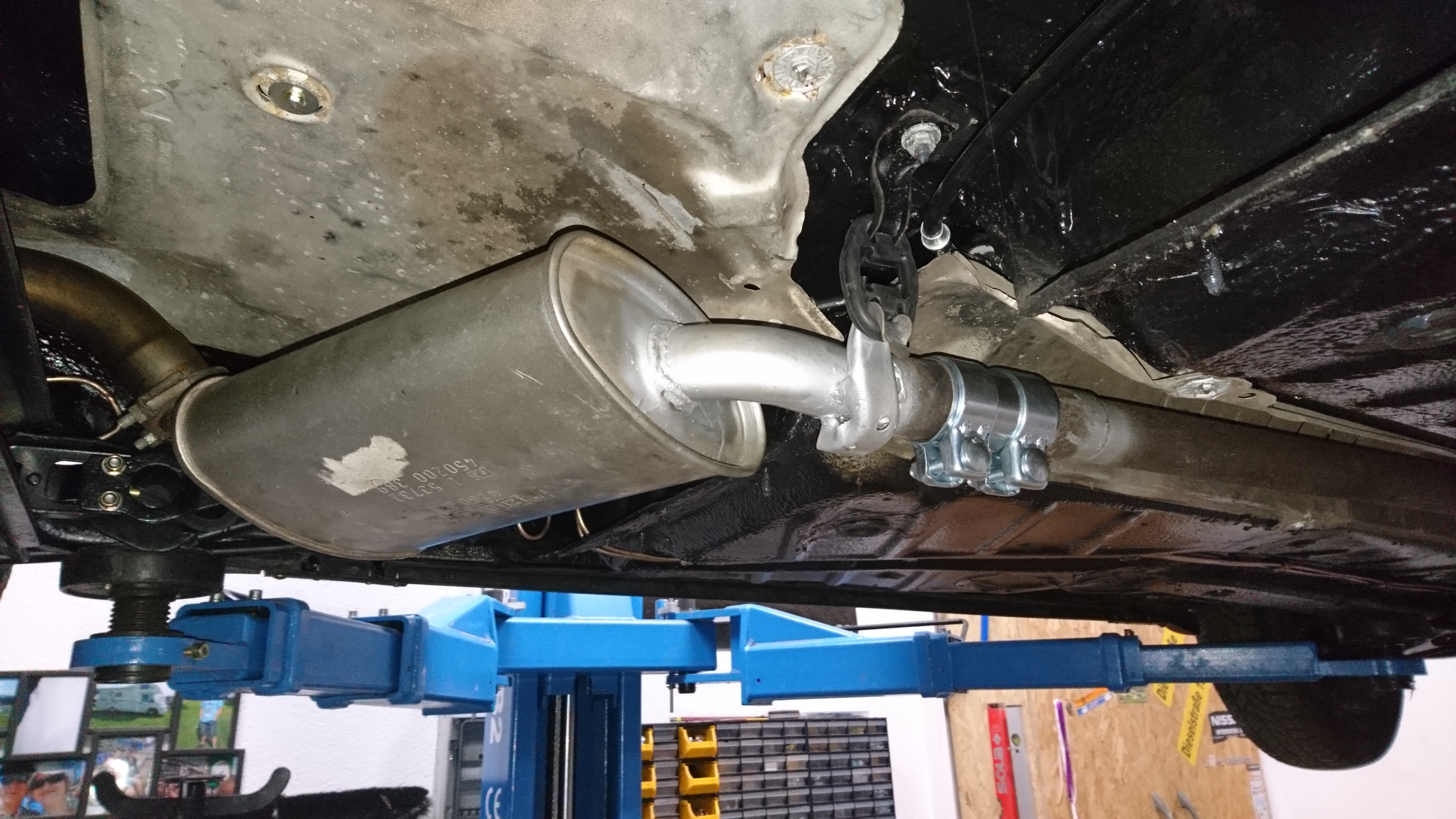 Finanziell ist im Moment keine komplette Auspuffanlage drin, jetzt soll der so erst mal laufen und TÜV bekommen, spätestens im nächsten Winter kommt dann was vernünftiges drunter.